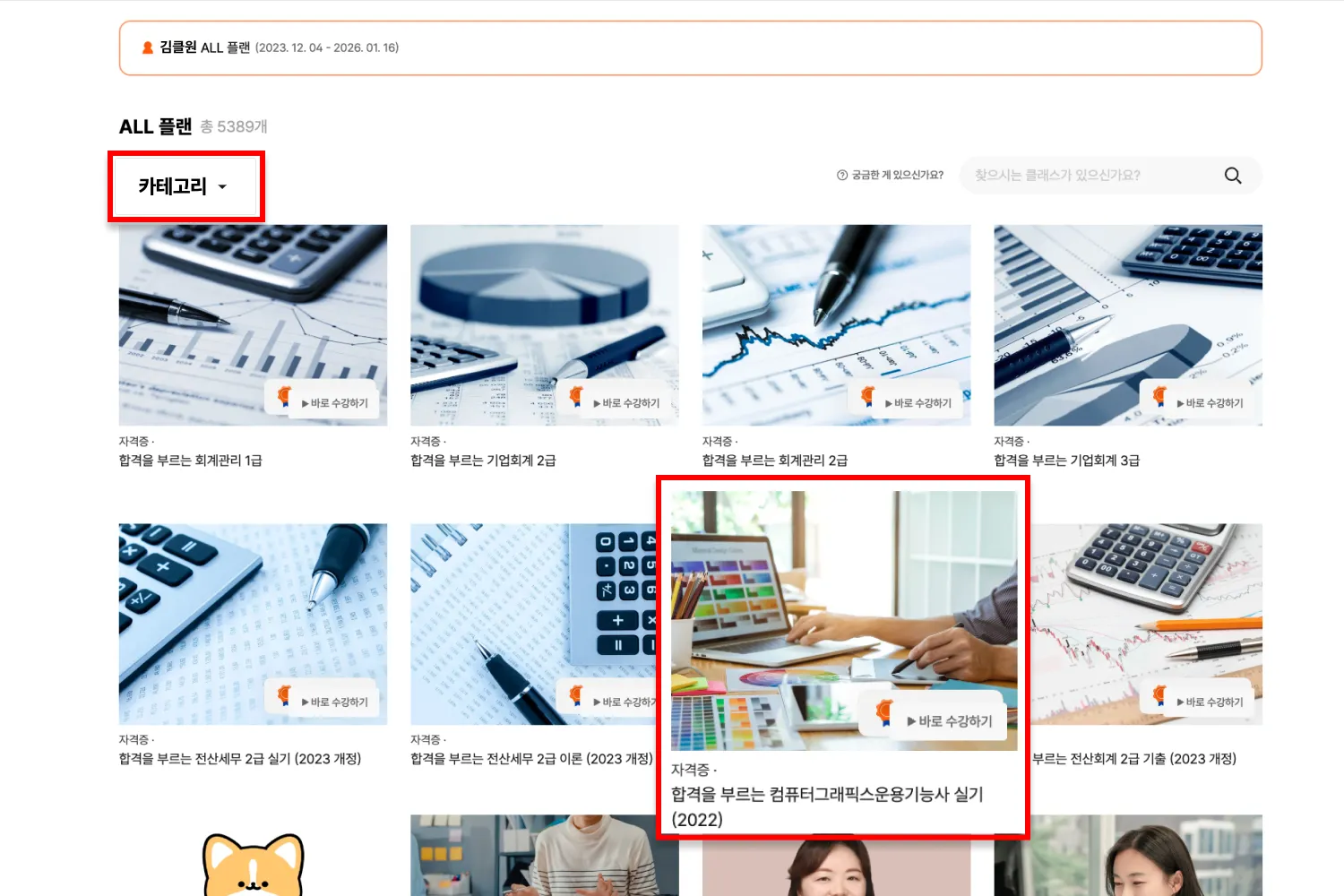 카테고리 버튼을 눌러 다양한 카테고리의 클래스를 탐색할 수 있어요.
